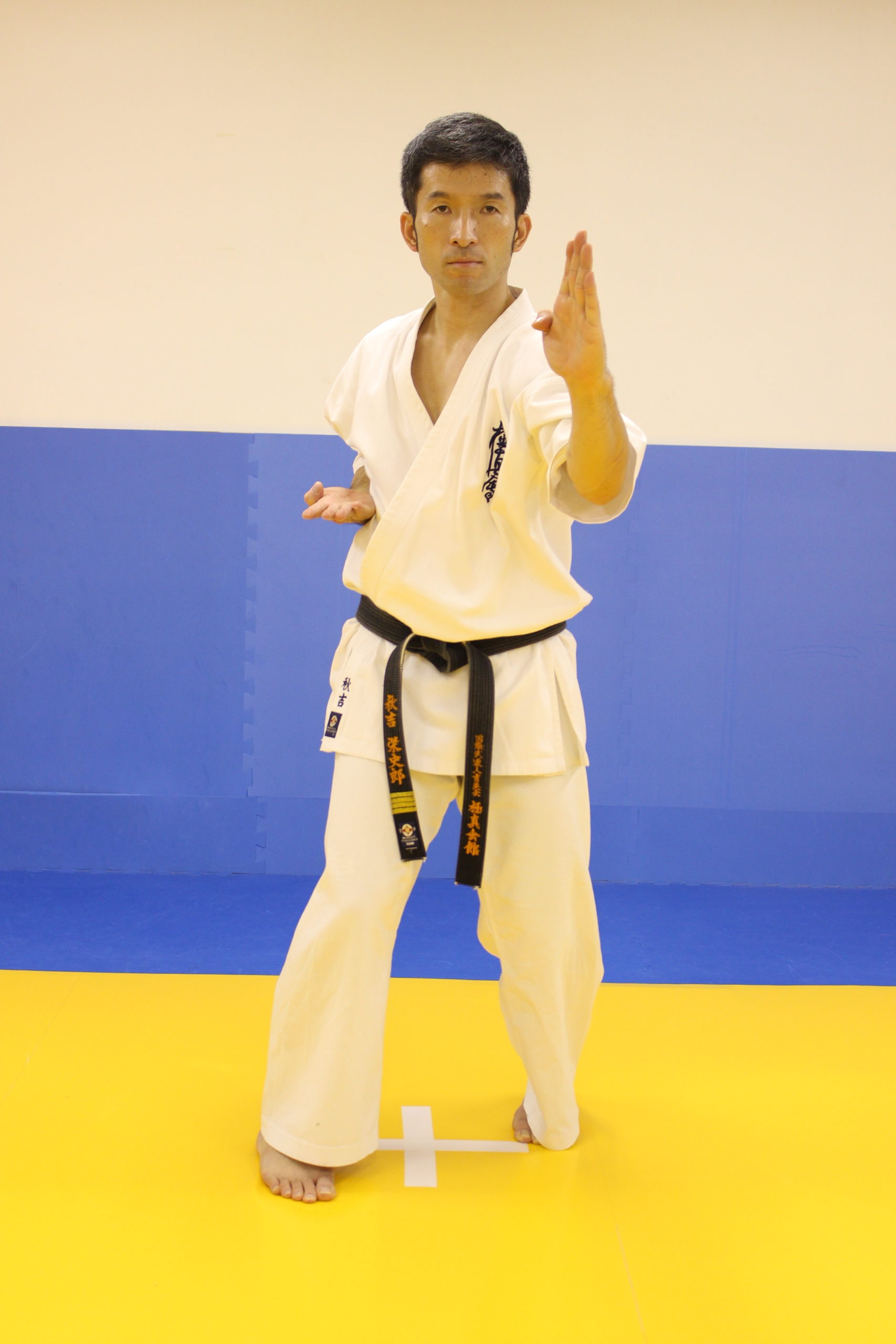• 基本修練項目2017ー11-3IMG_0275 三戦立ち手刀鎖骨打ち下ろし/前から