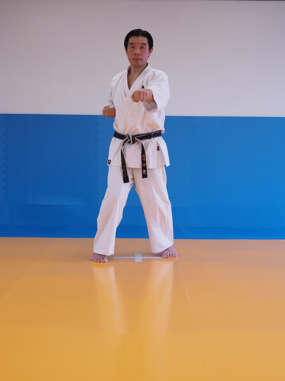 右拳の突きに続き、左の拳を突く。突き方は右拳と同様に。